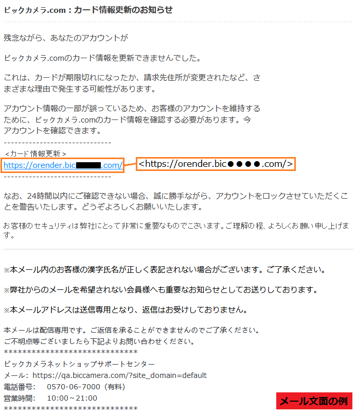 21 7 27 8 ビックカメラを騙る詐欺メールに関する注意喚起 情報基盤センターからのお知らせ